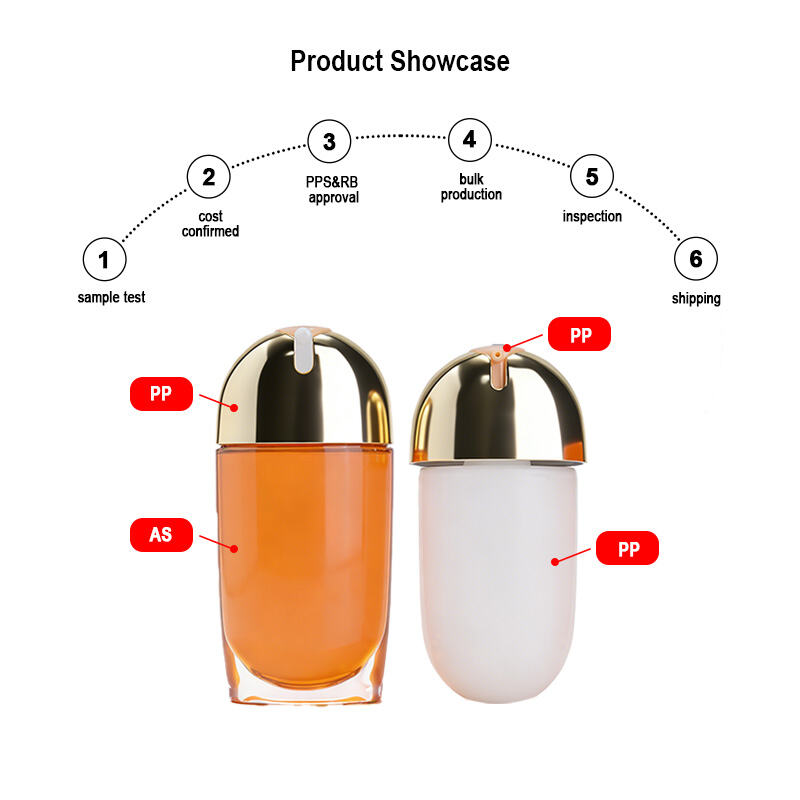 Fabriqué à partir d’un boîtier extérieur en AS (styrène-acrylonitrile) de haute qualité et de composants internes en PP (polypropylène), ce flacon offre une excellente durabilité, une résistance chimique élevée et une compatibilité avec une large gamme de formulations. La conception à double couche renforce non seulement la profondeur visuelle grâce à une paroi extérieure transparente et à un flacon intérieur coloré, mais assure également une protection accrue du produit contenu.