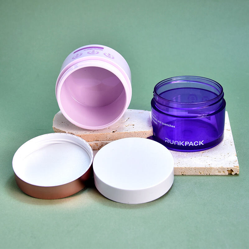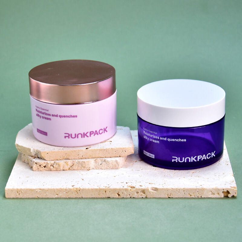Combining eye-catching design with practical functionality, the Hot-Stamping Design 50ml Pink and Blue Rotating Cover Cosmetic Jar is a reliable and stylish packaging solution for brands seeking differentiation and quality.