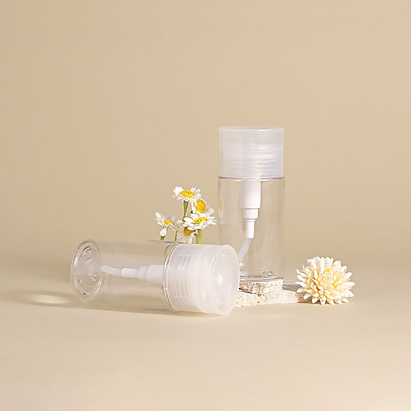 Opplev komfort og eleganse i én og samme løsning med vår gjennomsiktige PET-flaske for avsminkingsvæske og neglelakkfjerner – et perfekt tillegg til ditt skjønnhetsrepertoar.