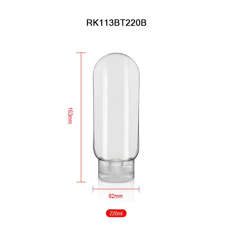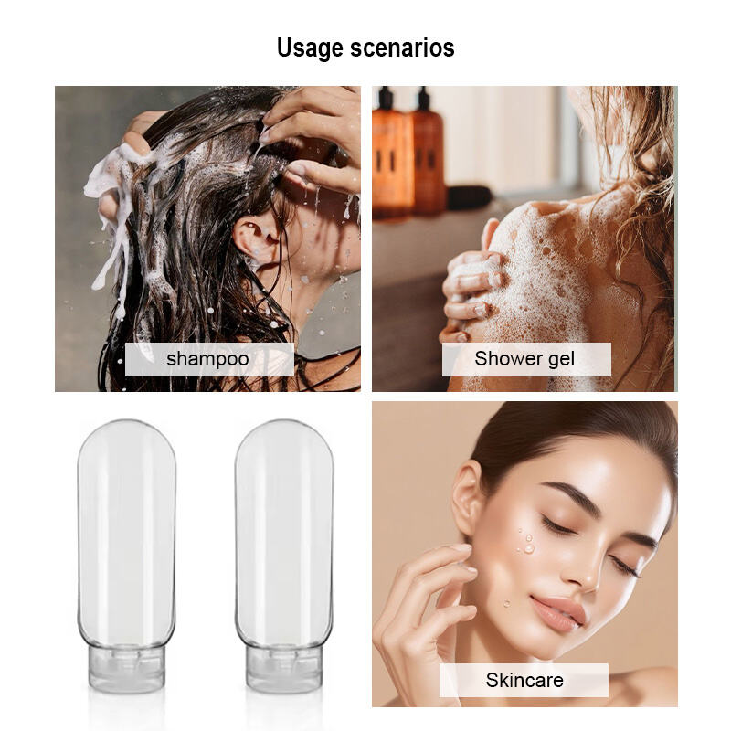 Wysokiej klasy przezroczysta pusta butelka zaprojektowana specjalnie do żelu prysznicowego, mydła do ciała oraz płynnego mydła. Charakteryzuje się wygodną pokrywką typu flip-top umożliwiającą łatwe dozowanie jedną ręką oraz bezpieczne zabezpieczenie zawartości. Krystalicznie przezroczysta konstrukcja z tworzywa PET podkreśla kolor i teksturę produktu, zapewniając jednocześnie doskonałą trwałość i odporność chemiczną.