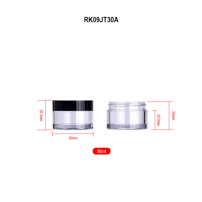 Potes transparentes para creme facial com tampa rosqueável preta em ABS